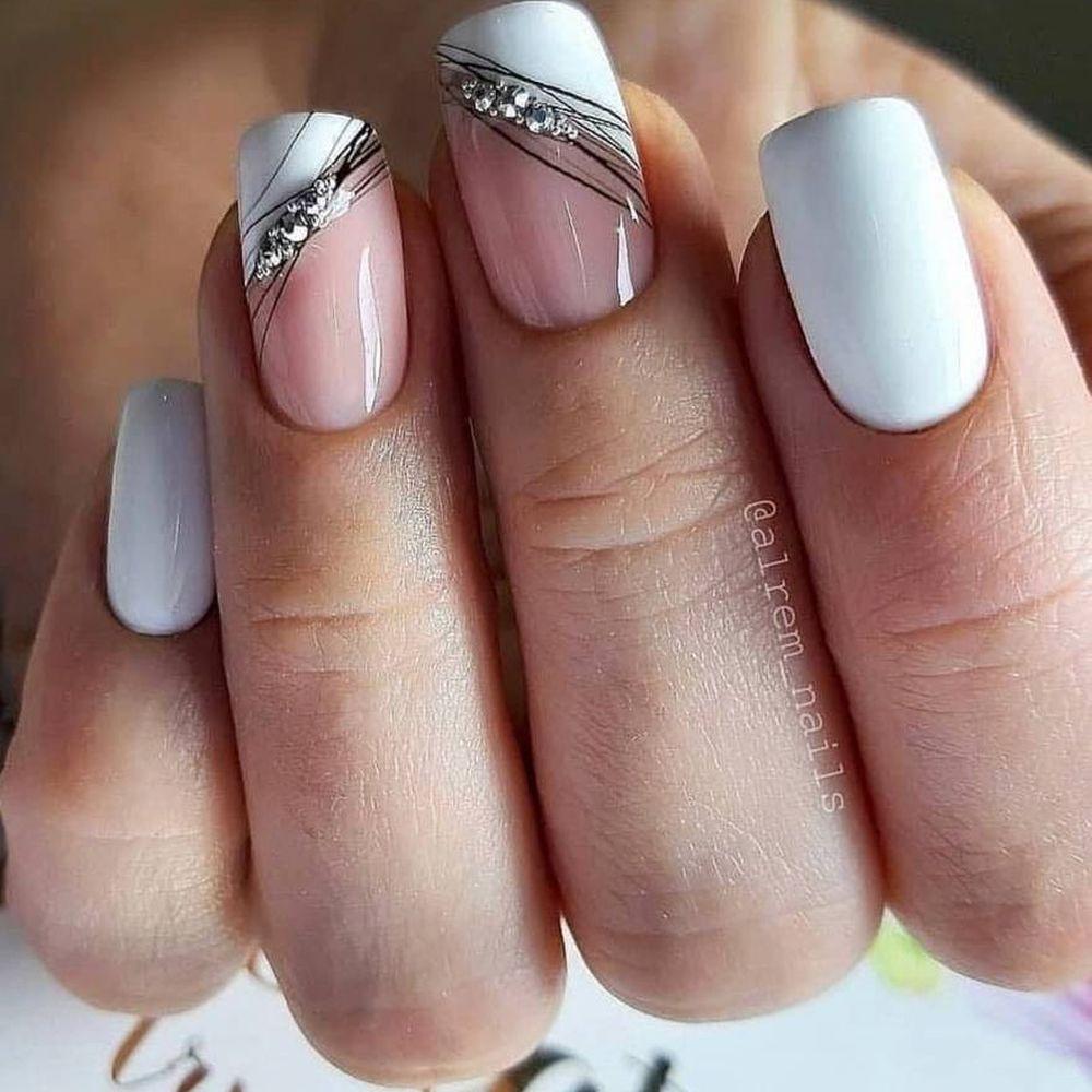 Еще один популярный дизайн ногтей — французский. Используя клейкие полоски, можно получить красивый маникюр с легким краем. Стильный лунный маникюр может украсить лунку.