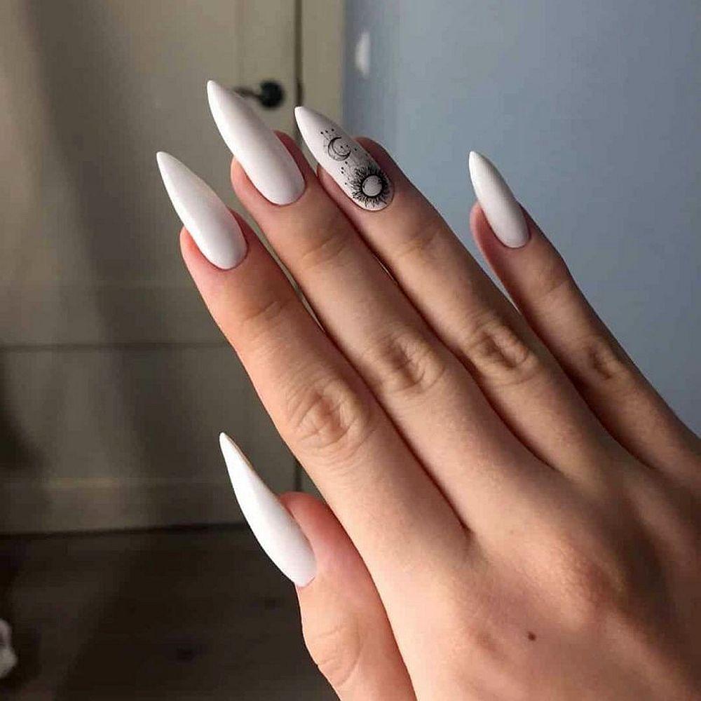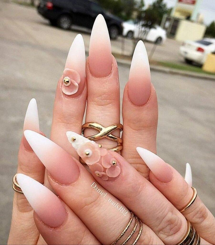 В летнем сезоне актуальность такой формы ногтей несколько снижается, и все-таки острые кончики можно выполнить для вечернего или праздничного ношения.