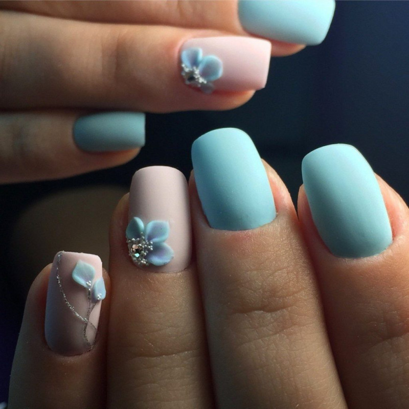 Фото голубого маникюра для разных сезонов: весна, лето, осень, зима