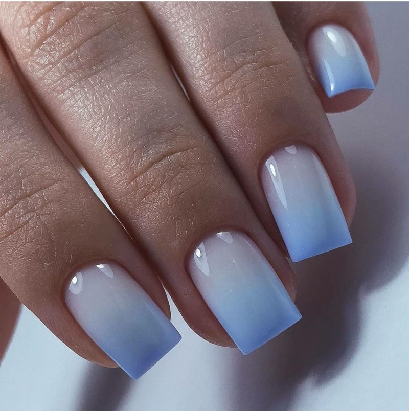 - омбре маникюр: попробуйте создать плавный градиент от светлого синего к темному на каждом ногтевом ложе. Это добавит интересный акцент и придаст вашим ногтям стильный вид;