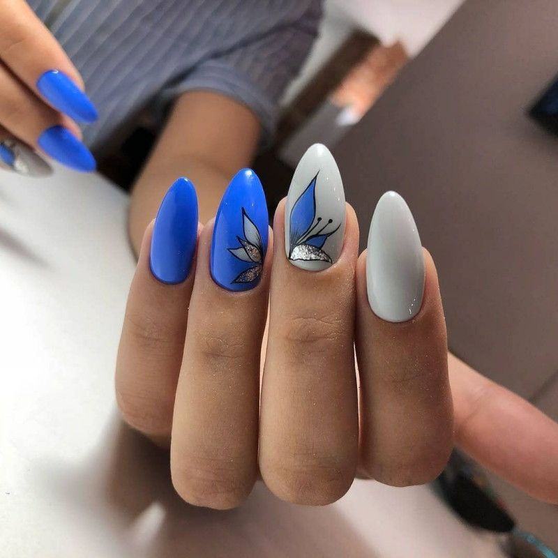 синий маникюр с рисунком: попробуйте нарисовать на ногтях абстрактные узоры, цветы или геометрические фигуры с использованием синего цвета. Это создаст уникальный и интересный вид;