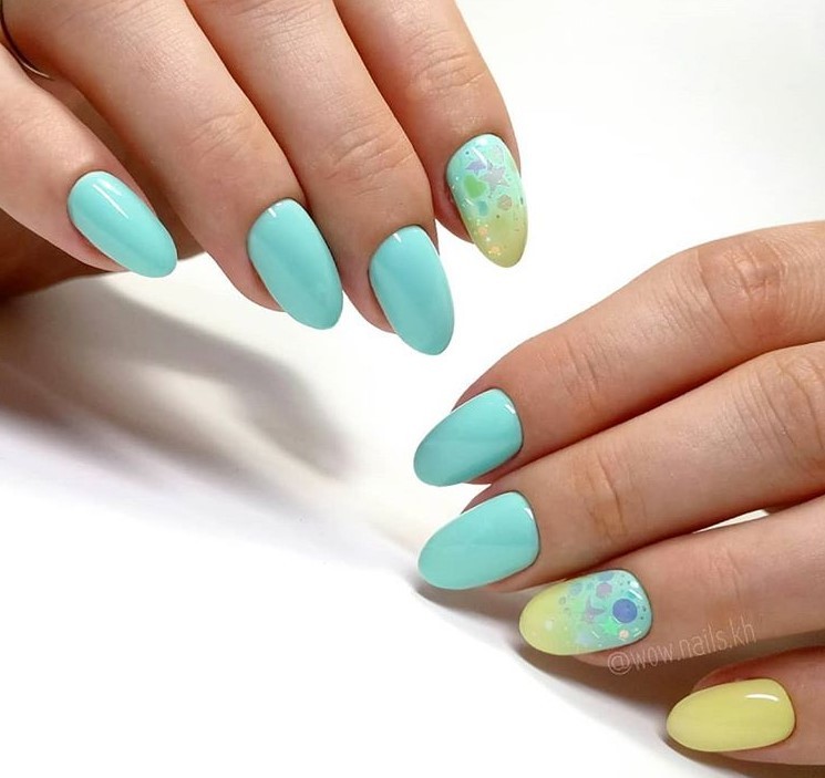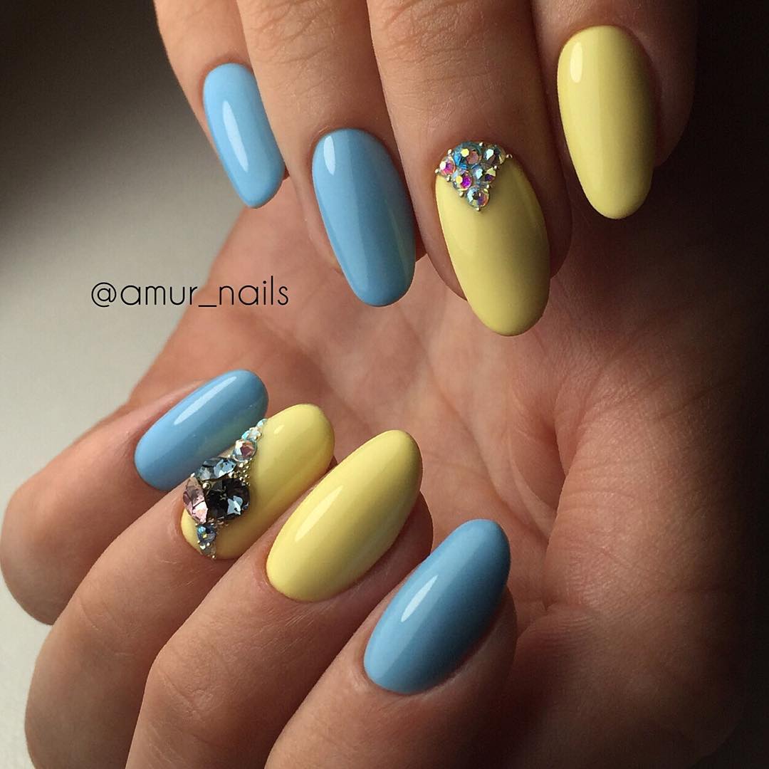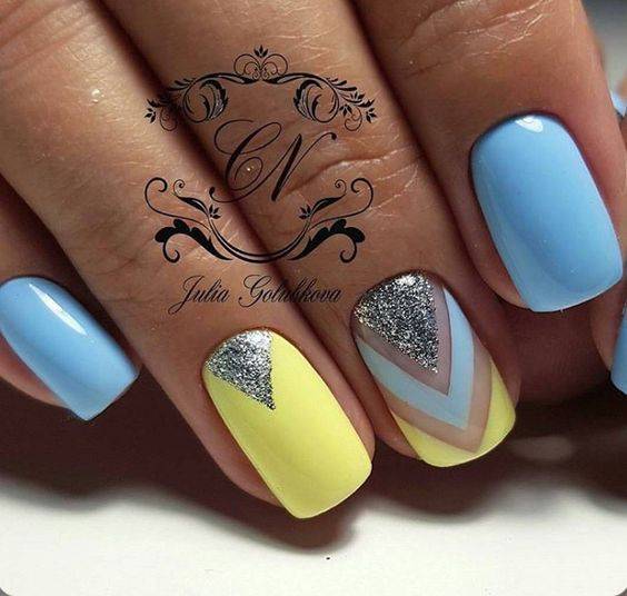 Желто-голубой маникюр