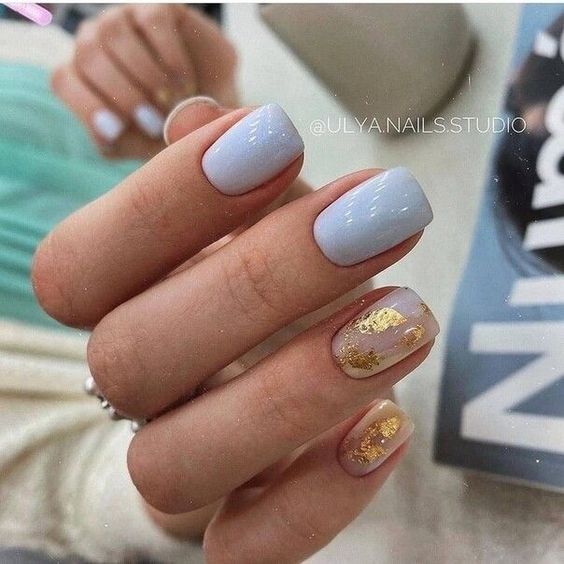 Маникюр в голубых тонах на коротких ногтях