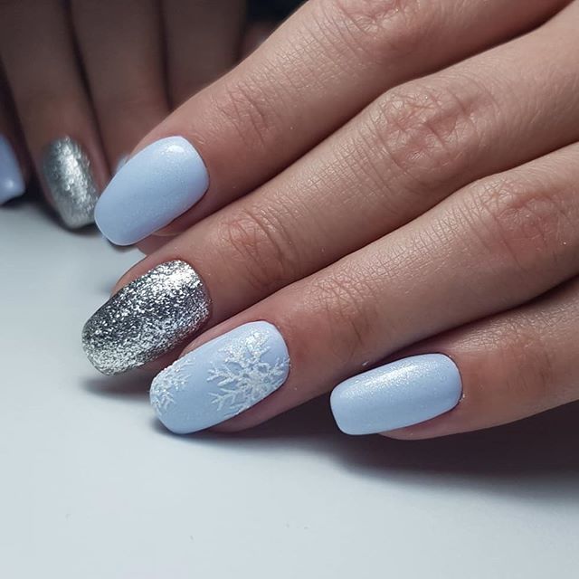 Фото голубого маникюра для разных сезонов: весна, лето, осень, зима