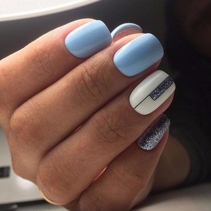 Нежно-голубой маникюр подходит и для коротких ногтей, ведь светлые оттенки зрительно удлиняют пальцы. В этом разделе вы найдете простые идеи дизайна ногтей, которые можно применять для домашнего маникюра, используя недорогие инструменты и декор для ногтей.