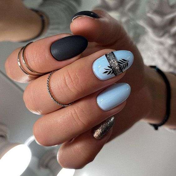 Чёрный с голубым – модное сочетание тонов в ногтевом дизайне