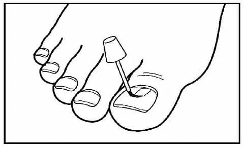 Лак удобен тем, что не требуется удалять ногтевую пластину для облегчения проникновения лекарства вглубь ногтя. Но, тем не менее, ногтевую пластину нужно подготовить к нанесению лака. Стопы и ногти моют с хозяйственным мылом, а затем обезжиривают поверхность либо специальным ватным тампоном, который идет в комплекте с лаком. Можно использовать и иные средства, которые продаются в аптеке: водный раствор синьки, спирт, пополам разбавленным с водой, йодовый раствор. Следующий этап обработки — тщательное высушивание или вытирание стоп и ногтей тканью из натуральных материалов или ватным диском. Далее ногтевые пластины шлифуются специальной одноразовой пилочкой (зачастую идет в комплекте). Ноготь также следует максимально коротко постричь. После окончания подготовительных мероприятий все инструменты для маникюра/педикюра дезинфицируют или выбрасывают, если они предназначались для разового использования.