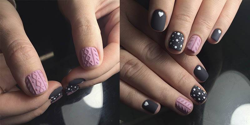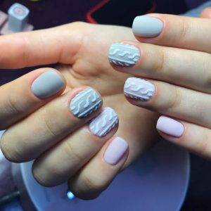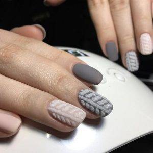Стильный вязаный маникюр 2020-2021 года в разных оттенках в одном маникюре