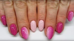 В настоящее время можно найти множество предложений по дизайну ногтей. Но совершенно не обязательно пользоваться этими вариантами. Вы можете поступить хитрее. Возьмите любимые вязаные вещи и присмотритесь к узору. Его вы легко можете повторить на своих ногтях. Это могут быть косички, ромбики, шахматный узор или бугорки. Однако ограничиваться тем, что вы увидели совсем необязательно. Подключите свою фантазию и вы гарантировано получите новый уникальный вязаный дизайн.