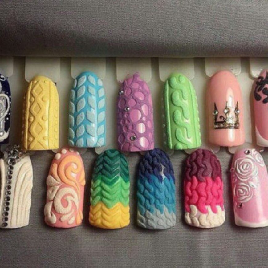 Внешний вид дизайна вязаного маникюра может заметно отличаться от выбранной текстуры, которая может быть