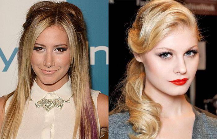 Укладки за счет пышной макушки и темени подходят многим типажам, подчеркивают стройность, изящность линий. Создают нежный трогательный образ, поэтому используются преимущественно молодыми девушками. Зрелым женщинам стоит избегать помпезных локонов.