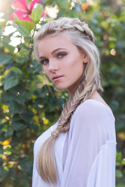 Это очень простая укладка, такое плетение придает загадочности образу девочки. Ее сочетают с локонами на висках, пучками, хвостами, начесами.
