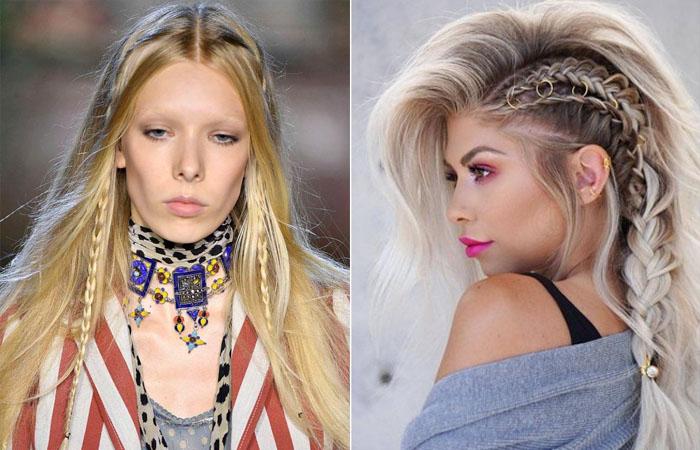 Чтобы добавить образу актуальности и быть в тренде, можно вплетать ленты с необычными рисунками, либо вешать массивные металлические заколки в виде геометрических фигур. Косы являются очень простой в исполнении прической, которую можно даже оставлять в некой небрежности, что воспримется только как добавление образу хрупкости и скромности. И это только добавляет плетениям преимуществ.