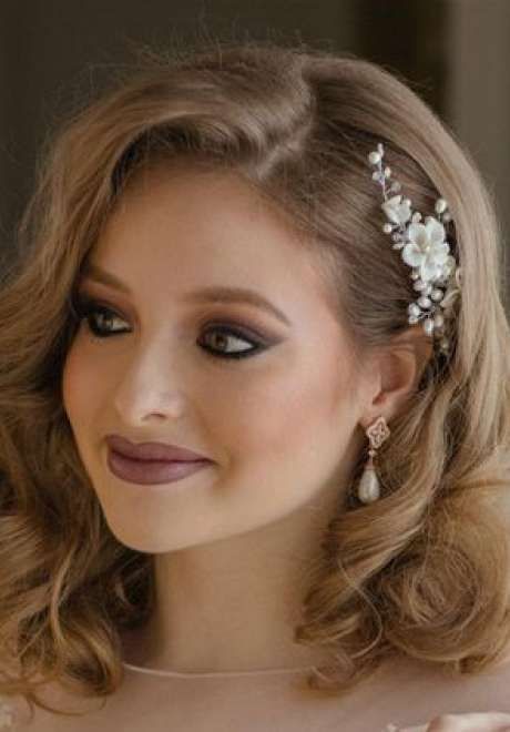 Прическа на торжество выполняется с помощью различных укладочных средств. К примеру, используя мусс можно высоко взбить волосы, тем самым создавая подобие шапочки. Если каре с челкой, то прическу можно украсить ободком.