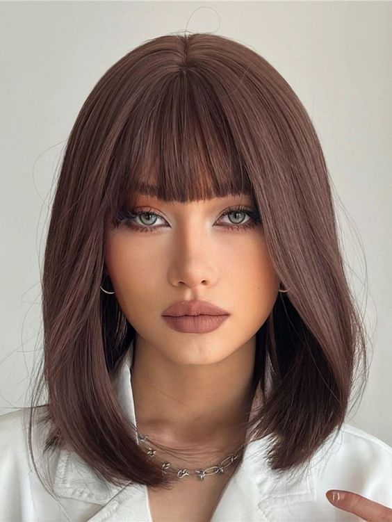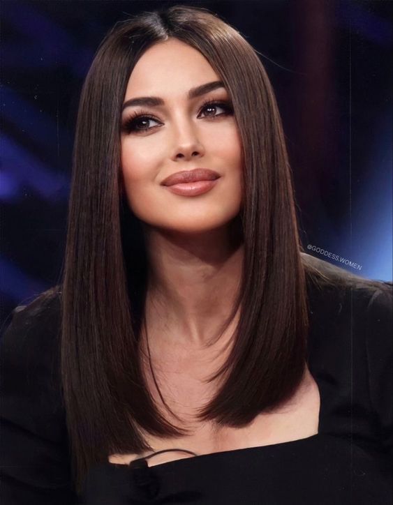 Для круглого личика подходят ровные стрижки, длина которых будет на парочку сантиметров ниже уровня подбородка.