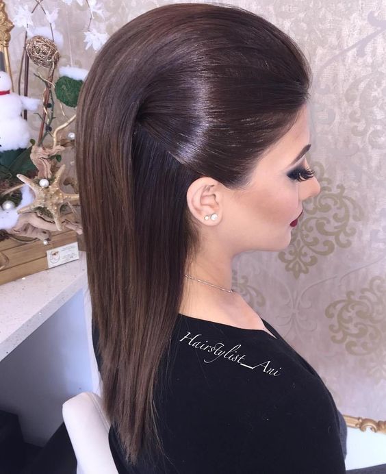 Красивые торжественные укладки– не значит обязательный объем и волны. В этом варианте все должно быть наоборот. Вам необходима идеальная гладкость и ровность прядей.