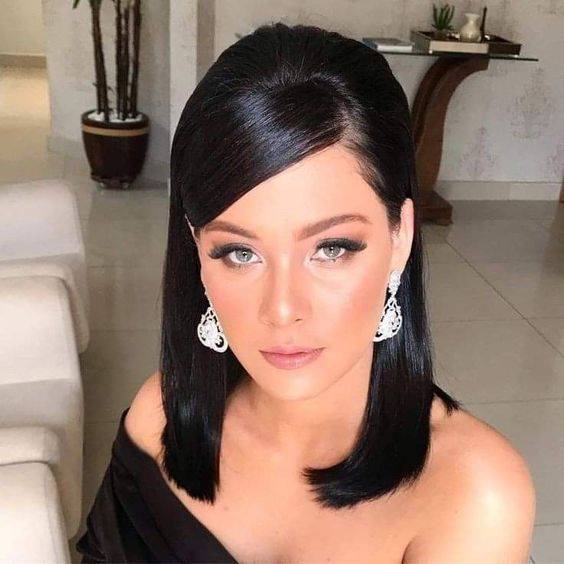 - Если у вас имеется челка, то оставьте ее прямой, а также дополните парой ровных прядок по бокам вдоль лица.