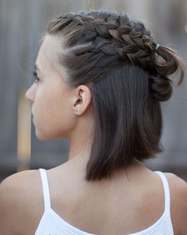Для девочек по младше прически на каждый день для коротких волос выглядят поскромнее. Здесь, главная задача забрать волосы у лба, чтобы они не мешали ребенку во время учебы.