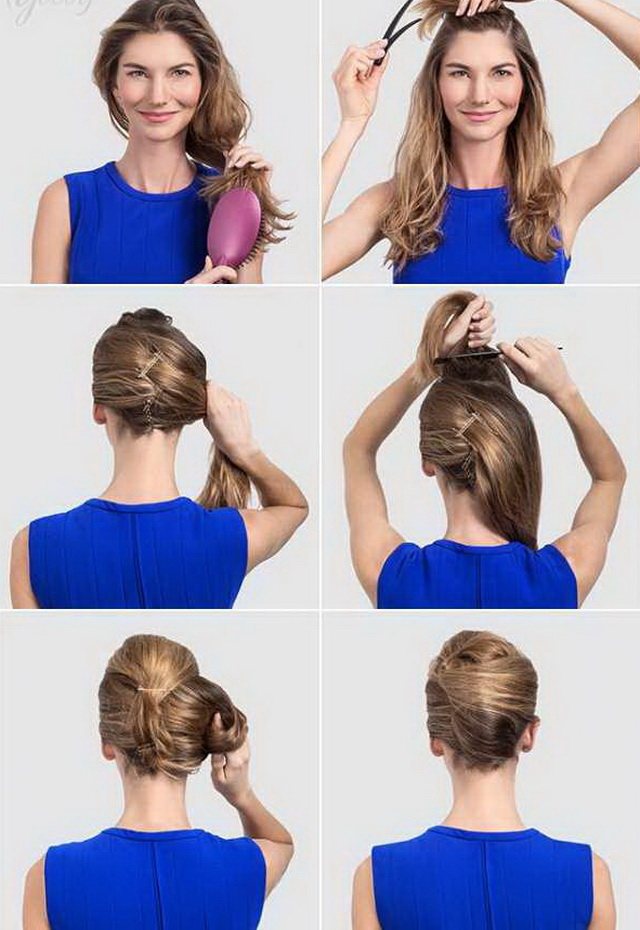 Среди простых и повседневных решений – это самый доступный вариант укладки, которая выполняется всего за 5 минут. Такой аккуратный пучок может сделать себе даже юная модница, не столкнувшись с какими-то особыми сложностями.