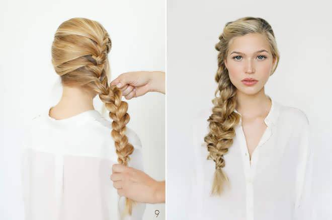 - 7. Кончик косы подворачиваем вниз и закрепляем шпилькой или заколкой.