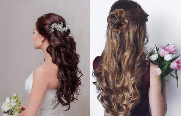 - красивые комбинации можно создать из венков, обрамлений, ободков, частично собранных прядей;