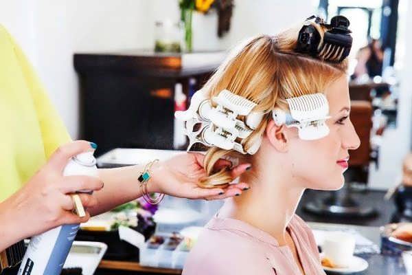 Шаг 5. Снимаем бигуди спустя 10-20 минут, обрабатывая каждый завиток лаком.