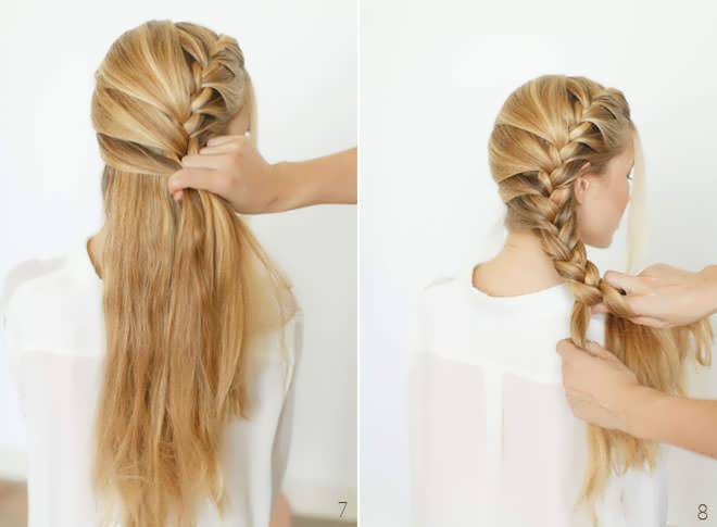 - 4. Заплетаем его до самого конца волос.