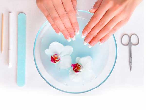 Прежде всего необходимо привести руки в порядок. Для начала нужно набрать в емкость теплой воды, добавить по чайной ложке сока лимона и морской соли, несколько капель геля для душа или шампуня. В этом растворе подержать руки 15 минут, после чего хорошо помыть их щеткой и вытереть полотенцем.
