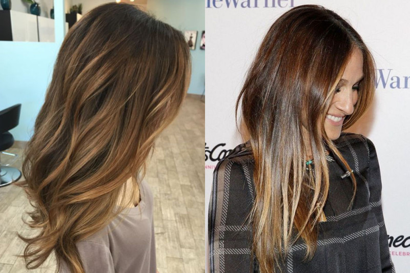 Эта техника идеально подходит для тех брюнеток, которые не хотят подвергать свою шевелюру полному обесцвечиванию. Да и выглядит красиво, стильно, модно, актуально!