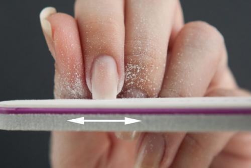 Работать пилочкой по ногтям нельзя! Если частички геля все же остались удаляйте их только бафом направляя его только по росту ногтя с верху в низ! От того, что вы можете спиливать лак пилочками еще и обращаясь ними в разные стороны появится слоения ногтей. Пилочка у вас только для снятия блестящего слоя гель-лака и придания формы ногтям.