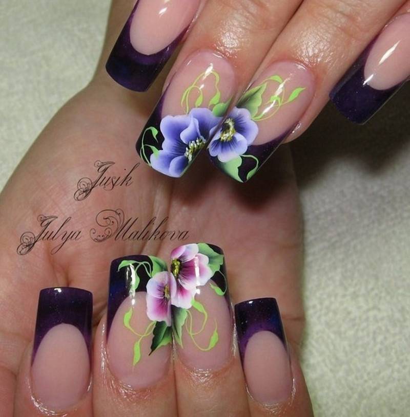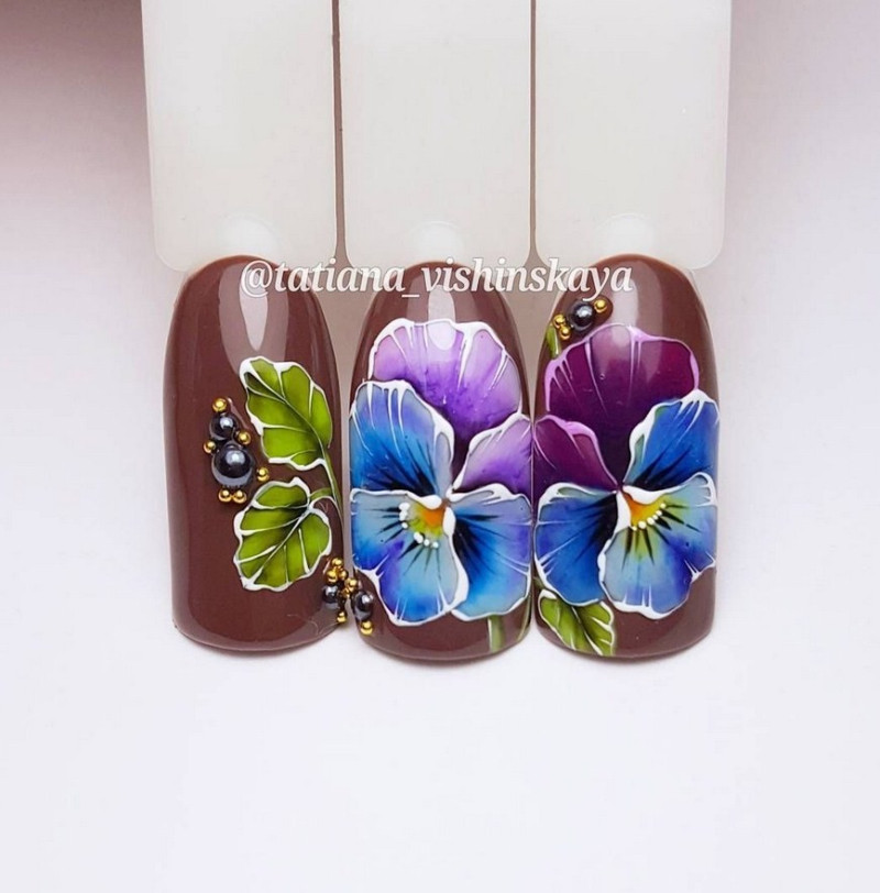 Самые, пожалуй, узнаваемые цветы, живущие на клумбах от Заполярья до субтропиков. Используются только их уменьшенные изображения, так как цветок анютиной глазки о’натюрель слишком крупен, чтобы уместиться на ногтевой пластине.