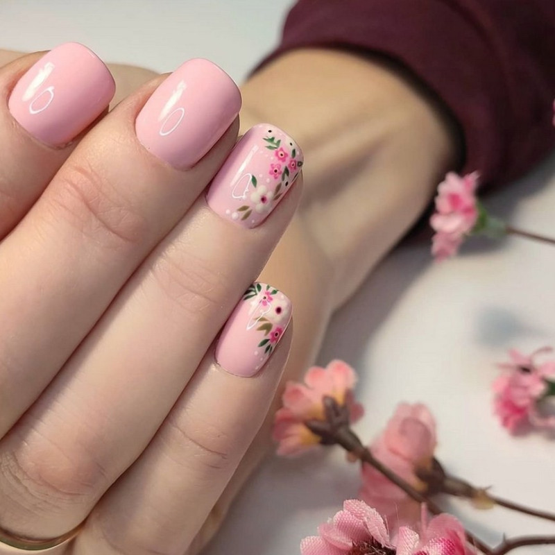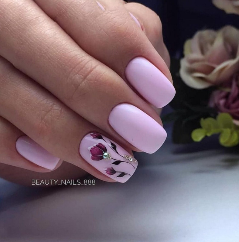 - Нежно розовый — это цвет молодых цветков цветущий сакуры. Этот оттенок придаст вашему маникюру невинности и легкости.