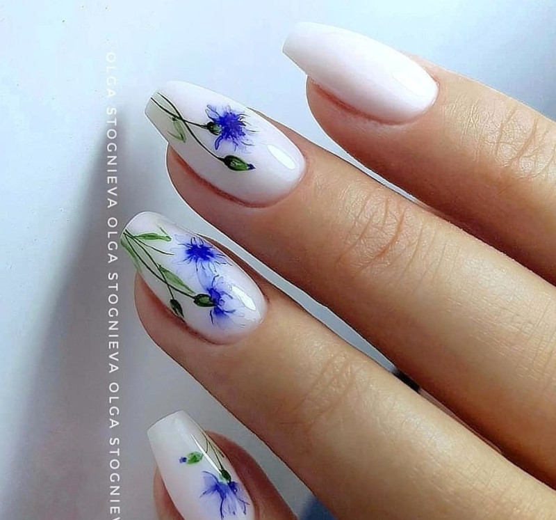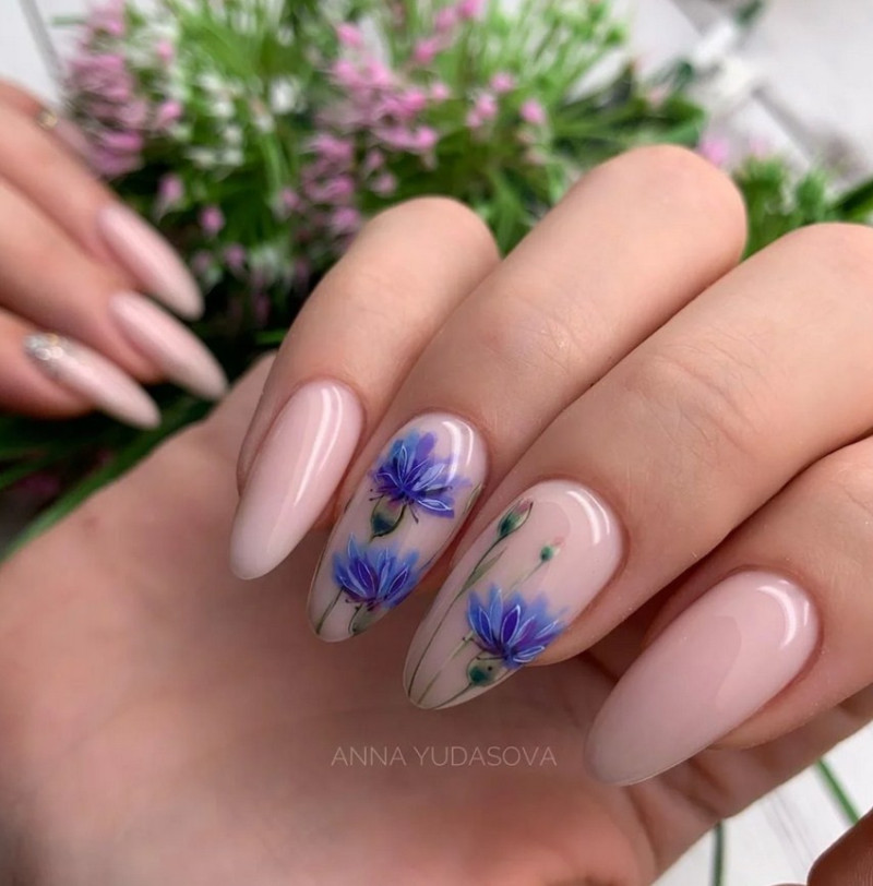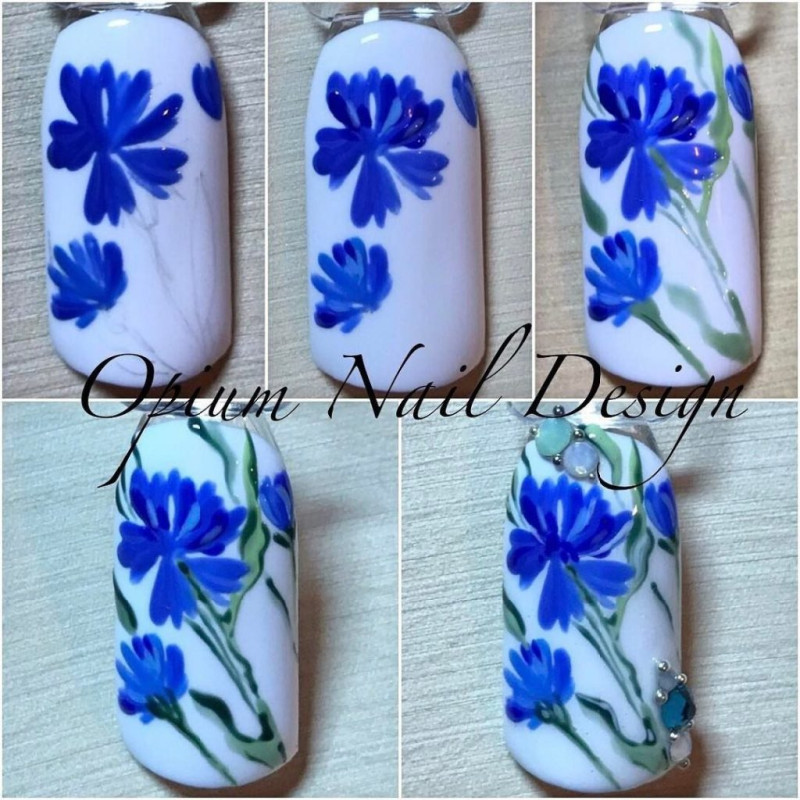 Изображение на ногтях васильков оправдано, выполняется он просто.