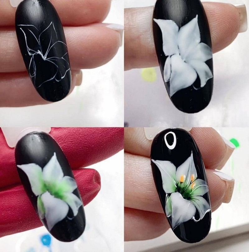 Чтобы достоверно изобразить лилию с её нежными переходами оттенков и цветов, нужны навыки настоящего художника-живописца и миниатюриста. Так что проще применить готовые гелевые наклейки.