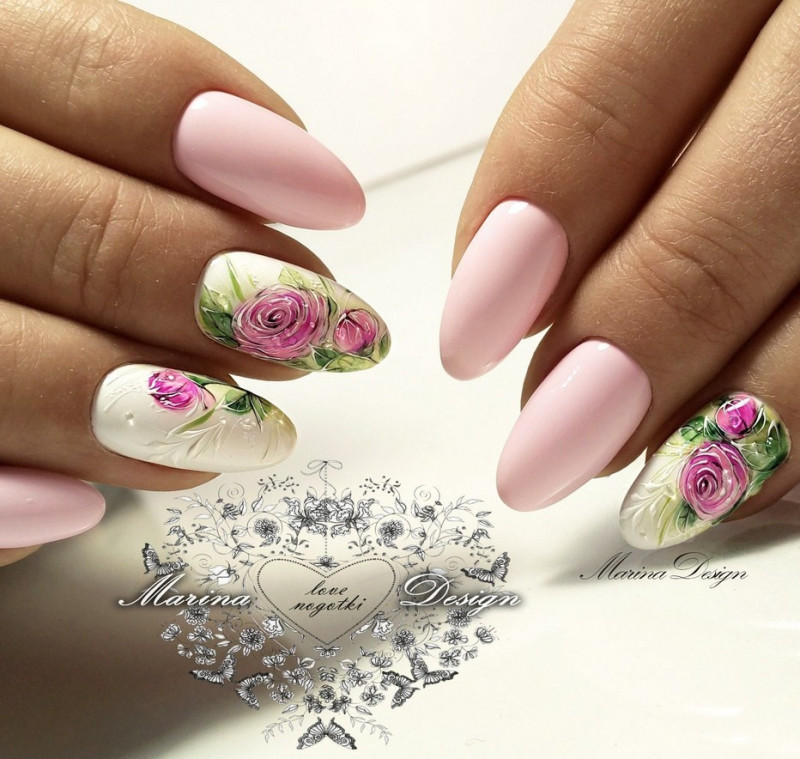 Весеннее оживление природы отражается на всех составляющих образа девушек и тематический маникюр не является исключением. Витающие в воздухе романтические флюиды побуждают окрашивать ногти в оттенки, подчеркивающие хрупкость женской натуры.