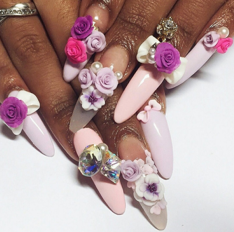 На длинных ногтях можно воплотить в жизнь все свои идеи: от сложных текстур до самых разнообразных рисунков.