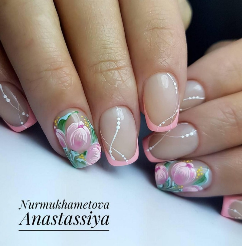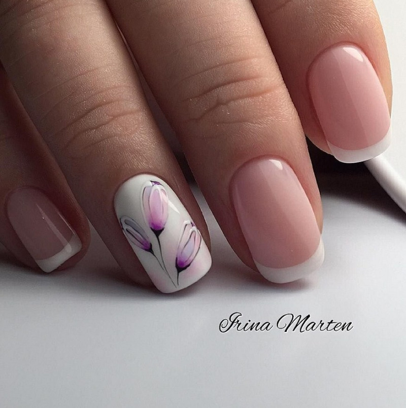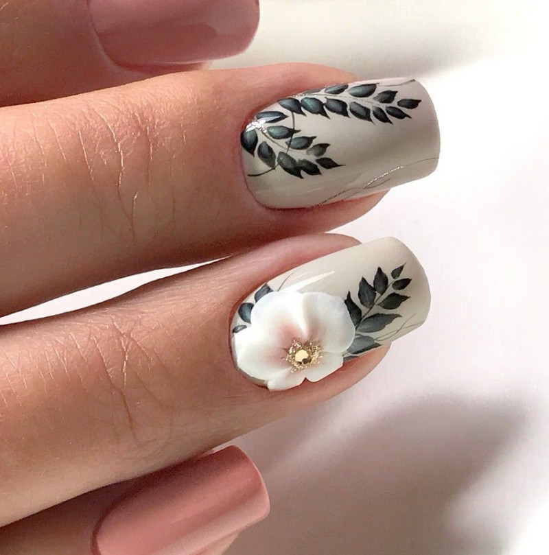 Нюдовые оттенки всегда актуальны в дизайне ногтей из-за своей универсальности. Нейтральный нюдовый маникюр гармонично сочетается с любым образом и стилем и великолепно смотрится как на коротких, так и на длинных ногтях. Разнообразить светлый маникюр можно при помощи рисунков.