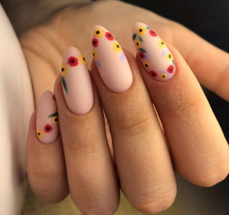 Миндалевидные ноготки, наверное, никогда не выйдут из моды. Это оптимальная и самая универсальная форма. Она отлично сочетается с разными оттенками лака. Весенний маникюр на такую форму может быть очень разным — от яркого необычного френча до втирки с рисунком.
