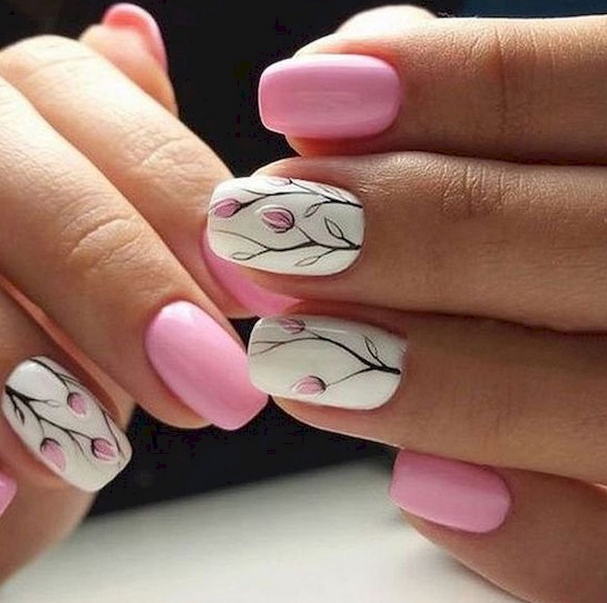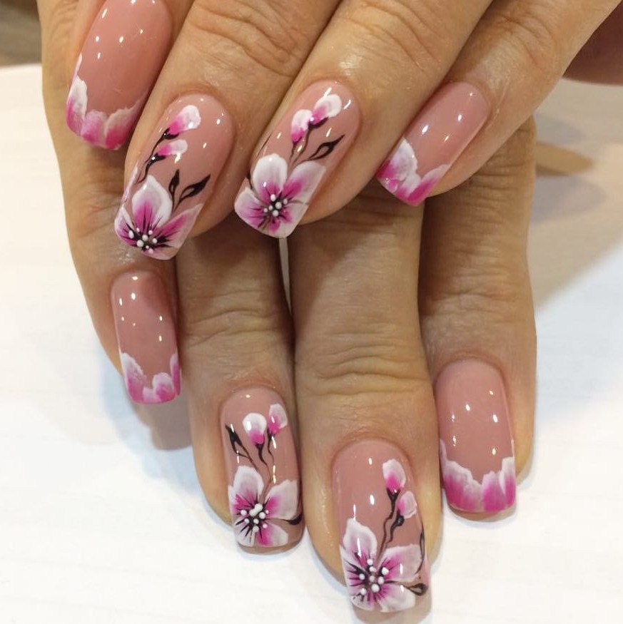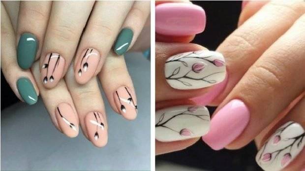 В весеннем дизайне, в отличие от всех других, можно наблюдать цветы и листочки, веточки, птиц. Они выполняются в различных техниках: