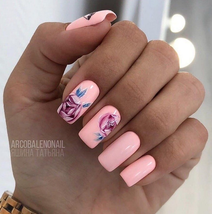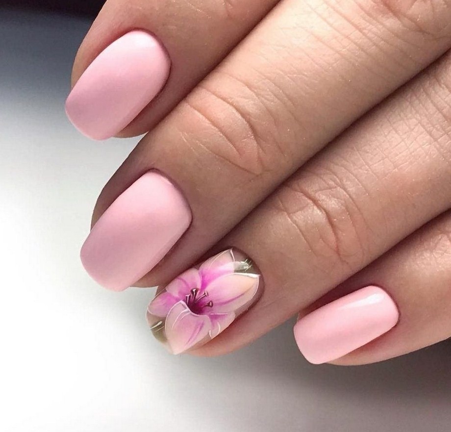 - Нежно розовый — это цвет молодых цветков цветущий сакуры. Этот оттенок придаст вашему маникюру невинности и легкости.