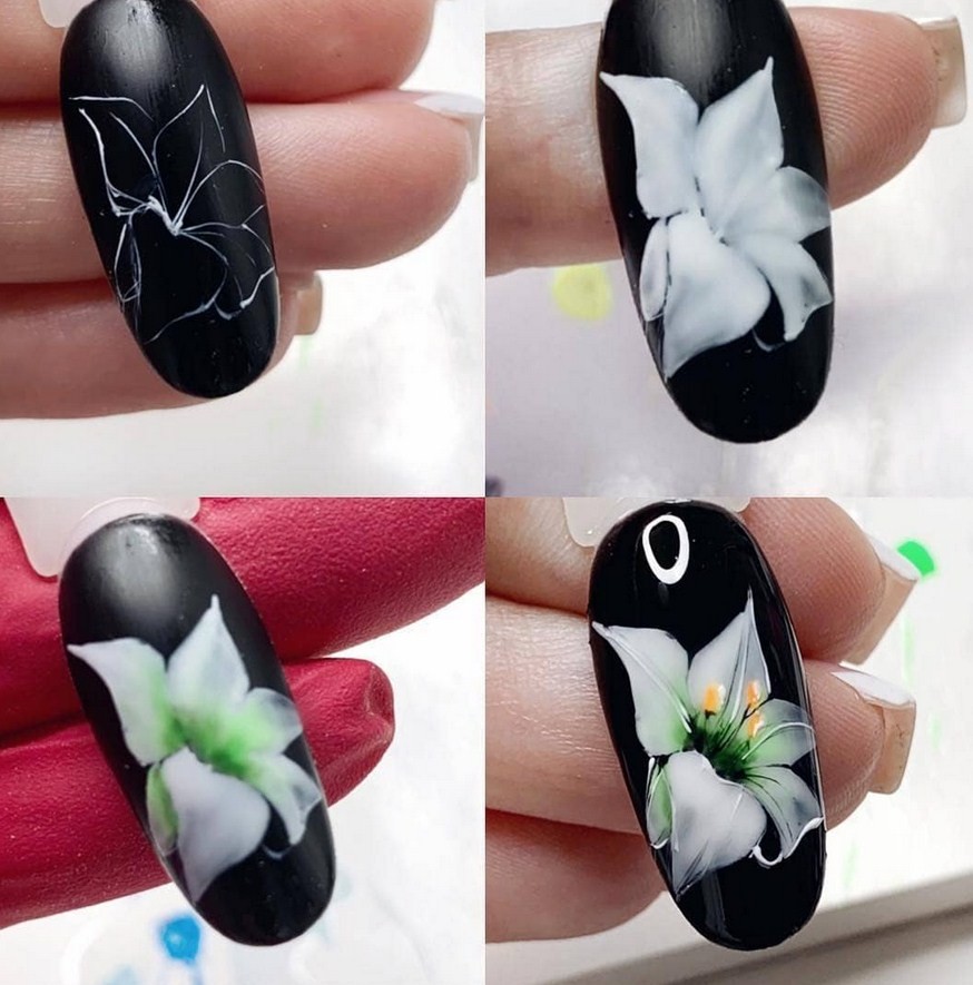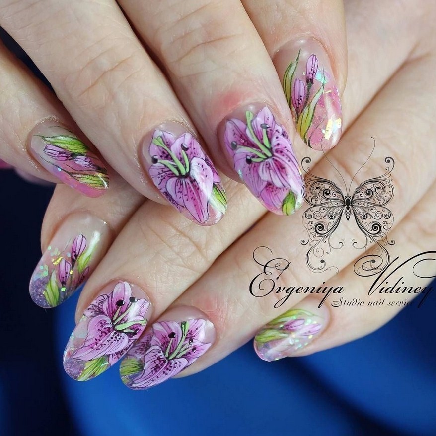 Чтобы достоверно изобразить лилию с её нежными переходами оттенков и цветов, нужны навыки настоящего художника-живописца и миниатюриста. Так что проще применить готовые гелевые наклейки.