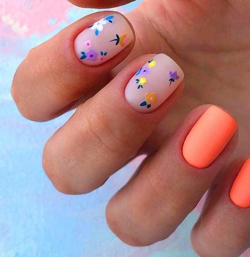 Короткая длина позволяет обойтись однотонным дизайном. Тем более, что в весеннем маникюре мастера предлагают использовать активные и очень красивые оттенки лака. Усложнить дизайн поможет матовое покрытие, декор в минималистичном стиле или акцентные ноготки.