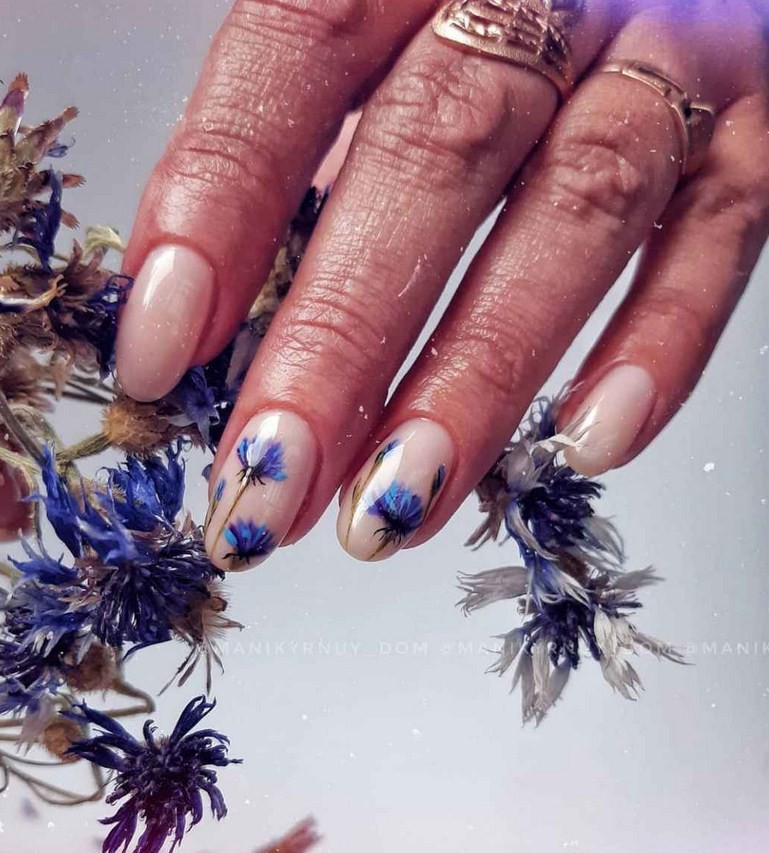 Изображение на ногтях васильков оправдано, выполняется он просто.