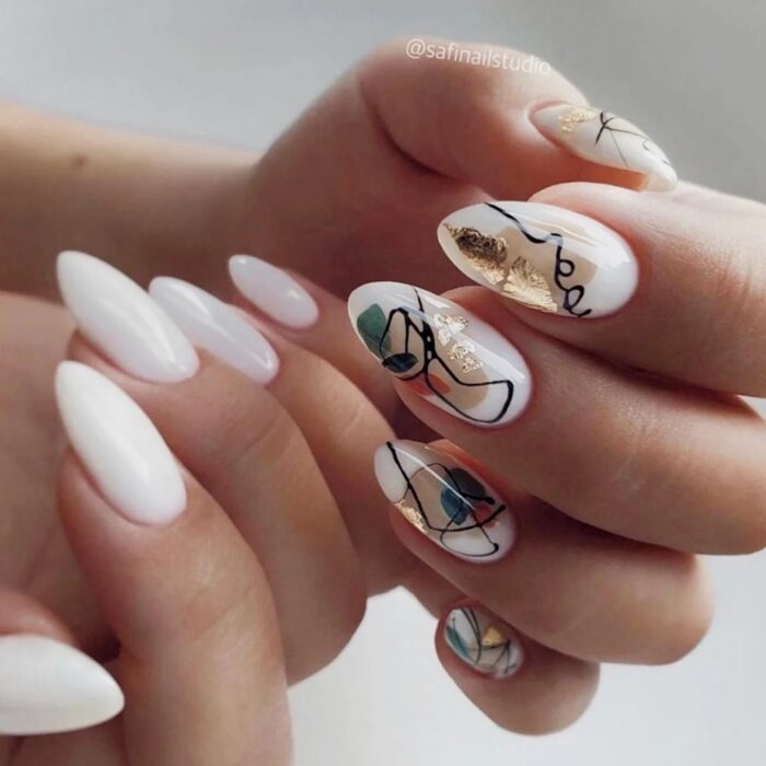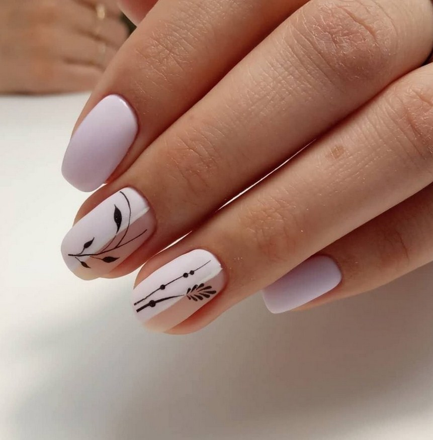Абстракция — размашистость и хаотичность делают абстракцию неподражаемой и в каком-то смысле уникальной, ведь каждый мастер привносит что-то своё. Вариации рисунков могут быть разнообразными – точки, линии, брызги, текстуры и многое другое. Матовые дизайны – беспроигрышны и универсальны. Достаточно добавить парочку ярких акцентов, чтобы маникюр преобразился и заиграл новыми красками.