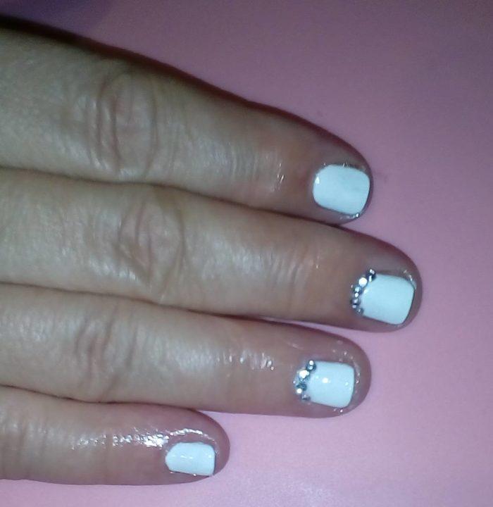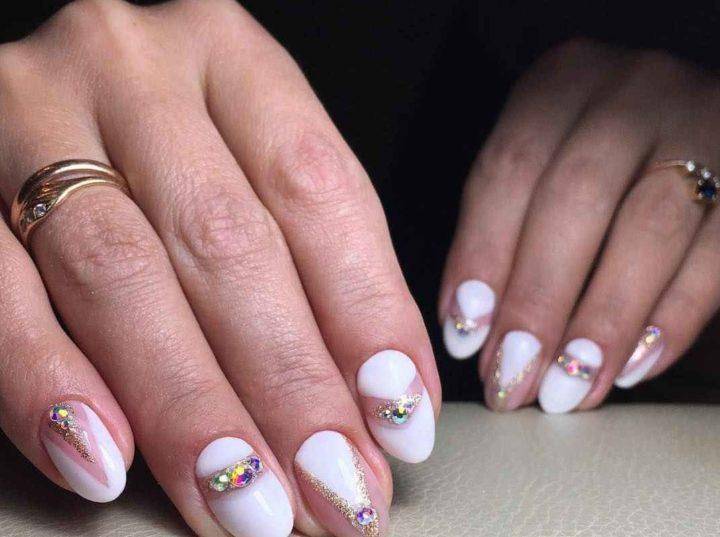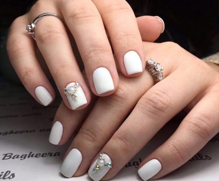 Замечательный способ чтобы выделить короткие ноготки — это использовать стразы. Стразы могут иметь любой цвет, размер, фактуру. Не стоит ограничиваться на стандартном подборе, экспериментируйте. Ведь именно благодаря стразам, можно сделать элегантный и нежный маникюр, а в другой композиции броский и даже вульгарный!