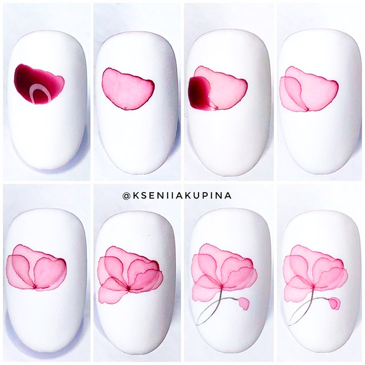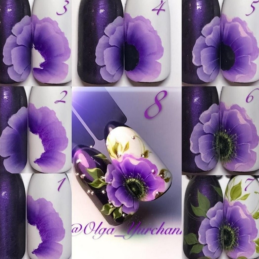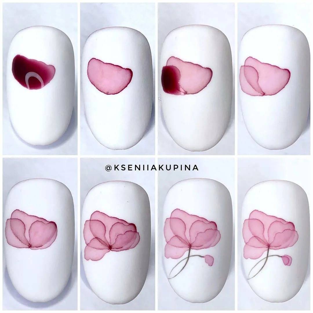 Как рисовать простые легкие цветы на ногтях гель-лаком, пошагово в 4 этапа: