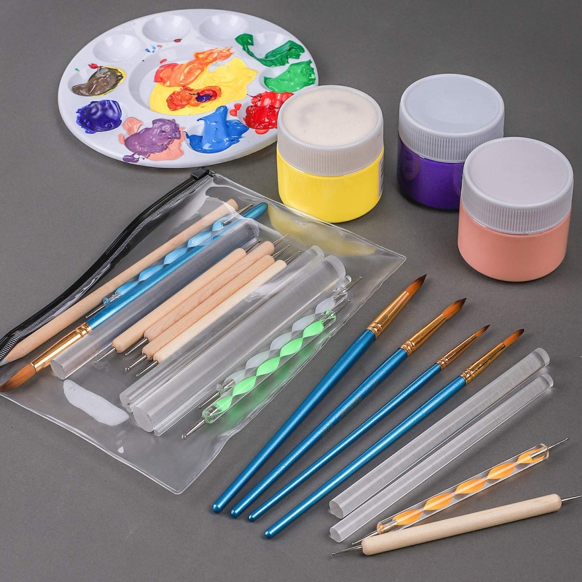 - Нанесение рисунка с помощью дотса, обычной иглы, зубочистки, кисти. Лак подбирается в двух цветах, контрастных друг с другом;