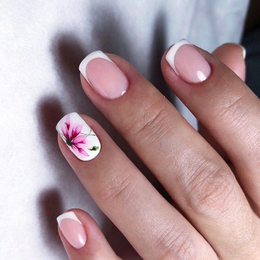 Какие варианты весеннего маникюра рекомендованы для формы квадрат? Стильно смотрится мраморный дизайн в сочетании с фольгой, яркий стемпинг, цветочный маникюр и, конечно, френч.