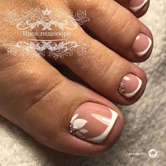 Здесь как и с синими и красными цветами есть свои виды. Классический педикюр может быть декоративно-золотым, иметь пастельные тона, белые и иметь множество других вариаций.