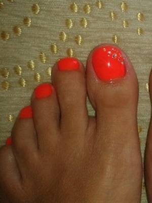 Хотя однотонный педикюр уже немножко поднадоел, создать самый модный педикюр можно, сочетая монотонные гель-лаки с яркими акцентами на большом ноготке.